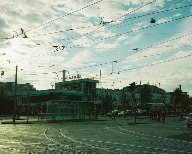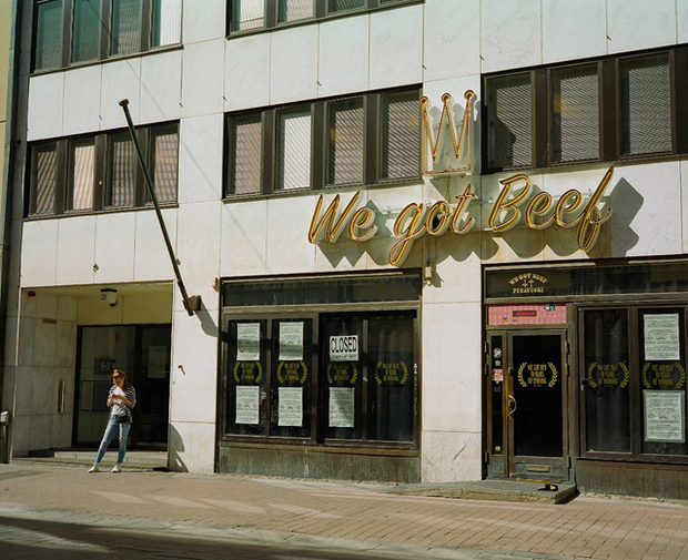 「CAMERA:makina67 / 2015年のフィンランド。大好きなネオン管サインと待ち合わせ中の女の子を入れて。」