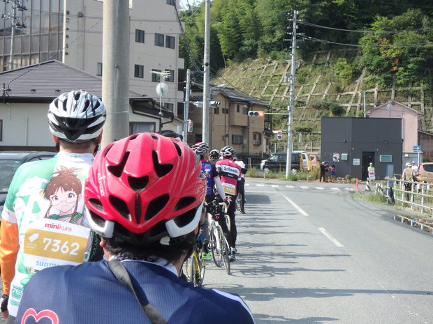 参加者が多いため数十名ずつに分かれ、4分毎にウェーブスタート。参加者は減速や停止時などお互いに合図を出しあい、安全走行に努めている様子も見られます。