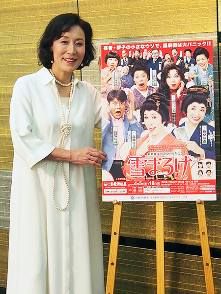 森光子の三大代表作の一つ『雪まろげ』は、昭和50年の青森県の温泉街を舞台に、芸者・夢子がついた小さなウソがやがて大きく膨らんでいく様を描いた人情喜劇で、1980年の初演以来500回を超えるヒット作だ。2016年には森が演じた夢子を高畑淳子で復活上演し、好評を博した。そして2019年、主なキャストはそのままに再演が決定。大阪は4月5日(金)より新歌舞伎座で幕を開ける。