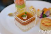 ・ホワイトアスパラガスのブランマンジェとオマール海老のコンソメジュレ
