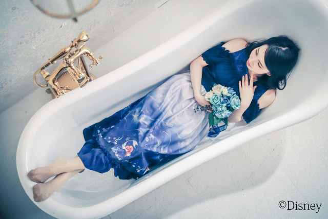 揺らめく水面を思わせるグラデーションが目を惹くワンピースや、プリンセス気分になれるkidsアイテムなど、アリエルの住む世界観をイメージ。