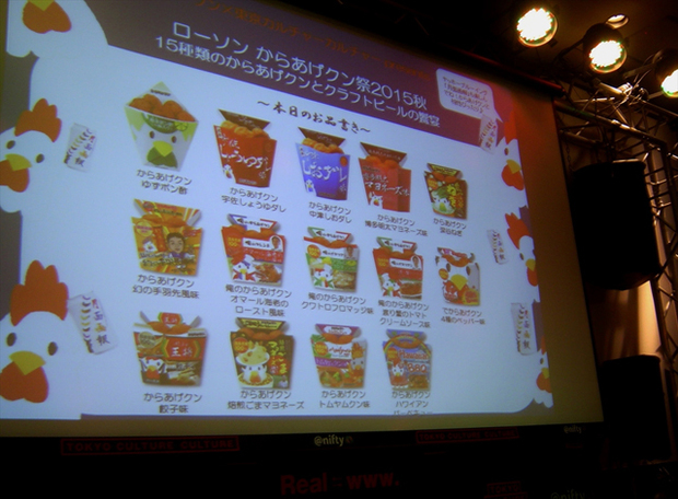 司会はカルチャーカルチャー・プロデューサーのテリー植田さん(左)。そしてローソンのからあげクン開発担当・東條さん(右)です。テーブルの上には、からあげクンのぬいぐるみが並んでいます。