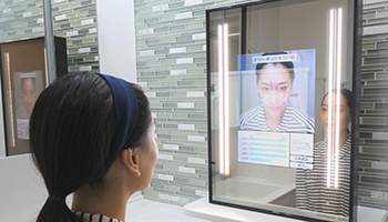 洗面室は、東京ガス都市生活研究所の研究データを基に、「広さ」「収納量」「空調」に関する不満を解消する設計とした。さらに住宅としては初めて、最新のセンサー技術による肌の状態チェックやバーチャルメイク機能を備えたパナソニックの電子鏡「スノービューティミラー」を導入。バーチャルメイク機能で、複数のメイクパターンを試すこともできる。