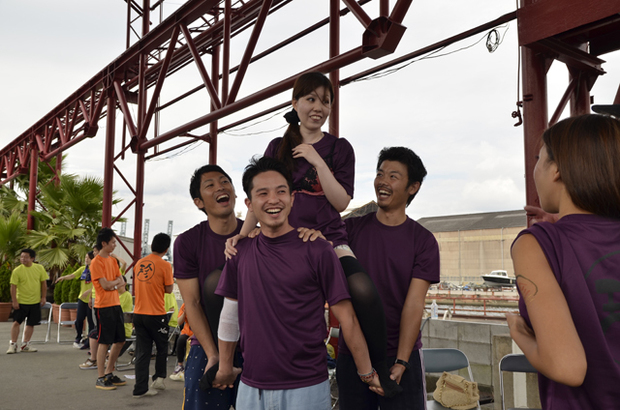 女性がブラを奪い合う競技「女将騎馬戦」。男性が騎馬役を担当する。