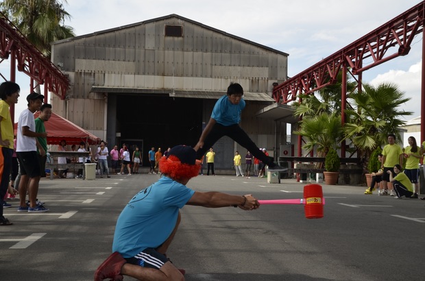 お次は、花形競技「まるでハードル走」。まるでハードルがあるかのように飛ぶ、演技力と身体能力が問われる競技で、1:1の個人戦で競い合う。