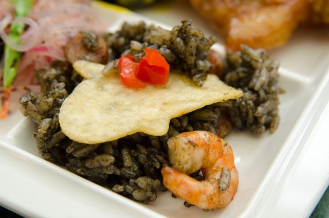 「チョリソー入りブラックメキシカンライス」見た目はハロウィーンらしく真っ黒。©Disney