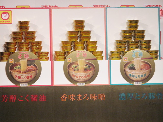 また今回新発売する『マルちゃん正麺 カップ』の「芳醇こく醤油」「香味まろ味噌」(以上2品は全国発売)「濃厚とろ豚骨」(関西以西限定)は、いずれも鶏ガラ、豚ガラなどを自社工場で炊き出した自家製だしを使用。芳醇こく醤油はうまみの強いスープに仕上げ、香味まろ味噌には香味油を加えるなど、それぞれのこだわりもすごいのです。