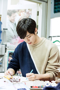 今回のイラストのお題が「将来住みたい家」だと伝えた際も、日ごろからハッキリと思い描いているビジョンがあったのか、少しも悩まずサササ~ッと完成。「玄関を出たら目の前にバスケットゴールがあるのが理想」「モコモコした子犬を飼いたい」「名前は、昔飼っていた犬と同じ“チョコ”って付ける」と、これまた具体的に話してくれました。そんなホンビンの“モコモコした子犬”を見て、「何だよこれ、雲かよ!」。ちょっぴりツッコんでみるラビでした(笑)。