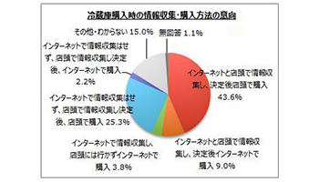 冷蔵庫の情報収集・購入時におけるインターネットと店頭の活用方法は、「インターネットと店頭で情報収集、店頭で購入」が43.6%、「インターネットで情報収集はせず、店頭で情報収集し購入」が25.3%と、店頭での購入意向者が7割弱だったという。インターネットでの購入意向者は約15%とのことだ。