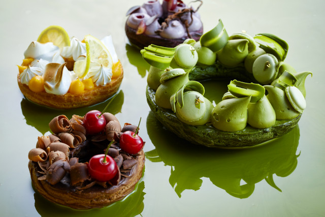 スイーツブッフェのアイコン「パリブレスト」が、今季は初のオープンタイプでカラフルに並びます。メインテーマの抹茶パリブレストは期間を通して味わうことができ、旬を迎えるフルーツを使ったパリブレストは、5月6月は「メロンとチェリー」、7月8月は「レモンとマンゴー」、9月は「ぶどう」と、季節ごとの変化が楽しめます。