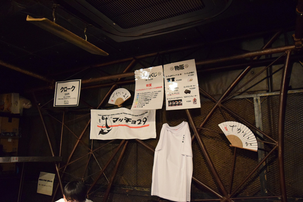 休憩には物販に並ぶ、マッチョファンの長蛇の列が出現。マッチョTシャツ、マッチョ29扇子、プロテインウォーターなどが販売されていました。