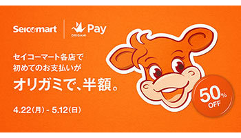 4月22日から、セイコーマートの1189店舗でスマートフォン決済サービス「Origami Pay」が利用できるようになる。また、22日~5月12日までの間は、「オリガミで、半額。」キャンペーン第5弾をセイコーマートで実施する。