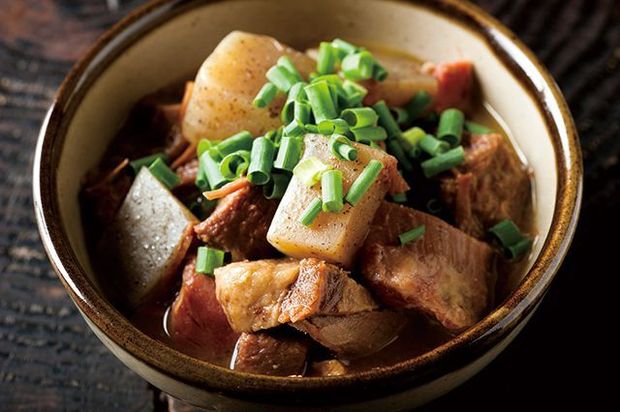 赤味噌で牛たんとこんにゃくをじっくりと煮込んでいる。熱燗や焼酎との相性も抜群!
