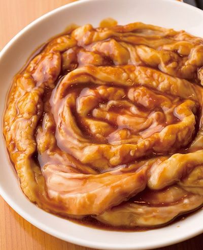 脂の甘みが堪能できる、名物の長~いホルモン!