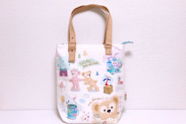 4枚のきんちゃくの絵柄(色)は、ダッフィー(黄)、シェリーメイ(ピンク)、ジェラトーニ(緑)、ステラ・ルー(紫)のそれぞれ1種類ずつ。