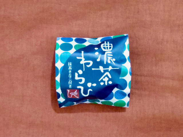 食べてみると、さっぱりとした清涼感で、お茶によく合います。「抹茶きな粉」のあわい苦味とわらび餅の甘さがあいまって、さわやか。おとなのスイーツといえるでしょう。