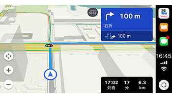 iPhoneをApple CarPlay対応の車載機器に接続し、「Yahoo!カーナビ」を起動すると車載機器に最適なインターフェースで表示する。着席してから設定を入力する据え置き型カーナビとは異なり、ナビアプリの「Yahoo!カーナビ」は、乗車前に目的地の入力やルート検索が可能なので、乗車後すぐに出発できる。