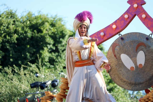 その後ろには、アラジンがフロートに乗って登場。ノリノリのアラジンにも、ぜひ注目ですね。