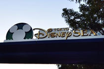 大きくディズニーの文字がある正面。周りにはディズニーの買い物袋を持った人がたくさんいます。