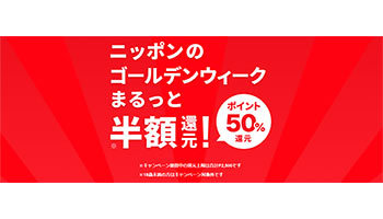 太っ腹な「ニッポンのゴールデンウィークまるっと半額ポイント還元!キャンペーン」は5月6日までの11日間