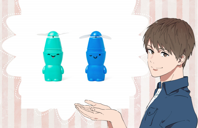 暑くなってくる季節にピッタリの「持ち運びの扇風機」。価格は200円(税別)。