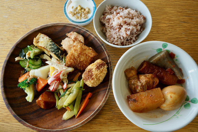 唐揚げやコロッケ、焼き魚、天ぷら、野菜のおばんざい、和洋のスイーツ、杜仲茶まで、できる限り地産地消にこだわっています。とれたての魚介や野菜の美味しさに驚かされ、若狭グルメの底力を実感できるはず。