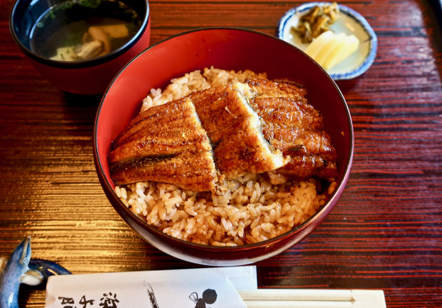 老舗の『うなぎや源与門』は、蒸さずに炭火で焼きあげる直火焼きと、創業以来継ぎ足している甘めのタレが特徴。