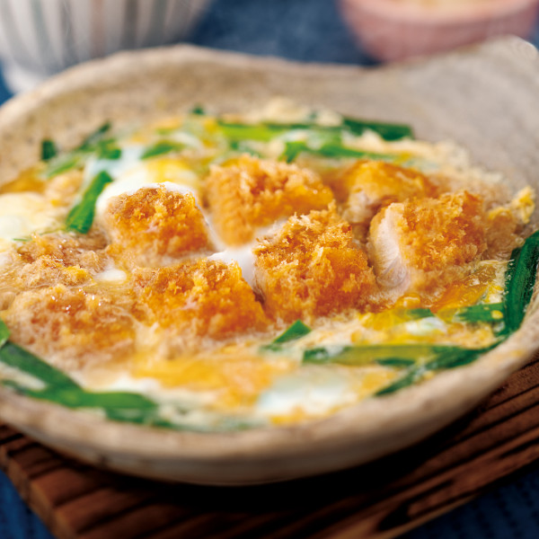 醤油ベースのすっきりしたタレで、ロースかつ、玉ねぎ、ニラをくわえて玉子でとじてあります。ボリュームがありながらも、さっぱり食べられます。