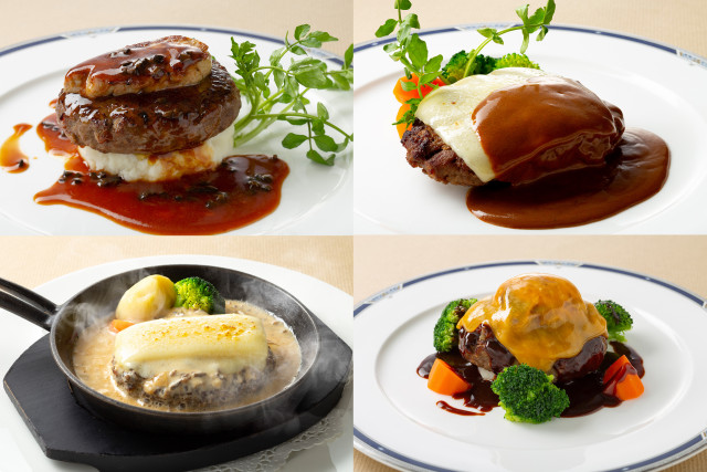 どのメニューもサラダブッフェ、スープ、食後の飲みものが付いたお得なランチセットとなっているので、心ゆくまで贅沢なハンバーグランチを楽しむことができます。