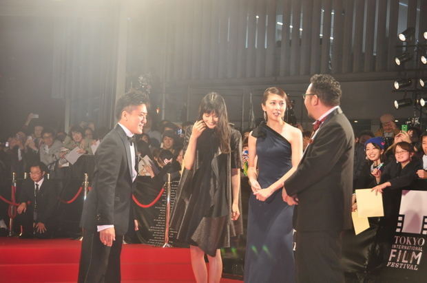 今年の映画祭のオープニングを飾る『ザ・ウォーク』のロバート・ゼメキス監督、クロージング作品『起終点駅 ターミナル』の佐藤浩市、本田翼、篠原哲雄監督らがステージに並び立ち、写真撮影を終えて舞台袖に消えていく。