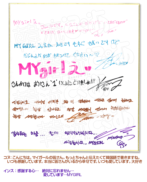 MYNAMEメンバーの直筆サイン入りMYgirlへのメッセージ色紙