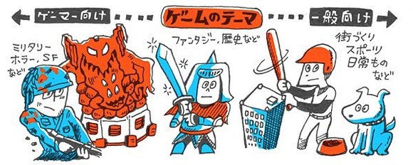キャラもの以外のテーマでも、「暴走族のナワバリ争い」や「キャバクラ嬢の出世」など、ゲーム機を買ってゲームを遊ぶような人以外の、たくさんの人の興味に合わせた、さまざまなソーシャルゲームが、ありとあらゆる形で作られている。
