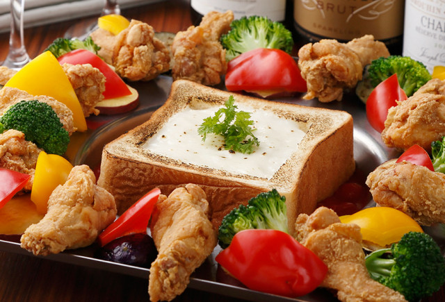 彩羽上野店にて、パネチキンを進化させた“食パネチキン”が食べ放題で提供中。食パンの中にとろ~りチーズがたっぷり入った、食欲をそそる逸品の登場です。
