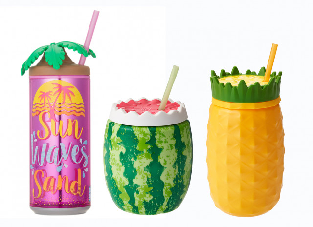 クールギア パームツリーカン サン 1,200円、トロピカルフルーツ タンブラー(スイカ、パイナップル) 各950円