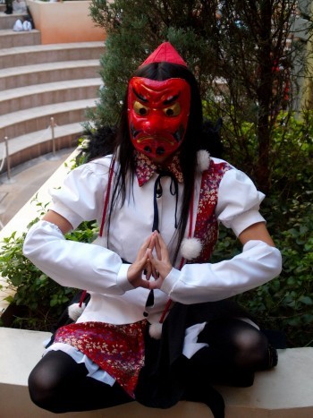 ハロウィンパレードの皆さんが集まるラ チッタデッラ周辺はすごい人出!しかもほとんど仮装している…まさしく異界と化したカワサキなのでありました。なぜか天狗少女がいるし(笑)。
