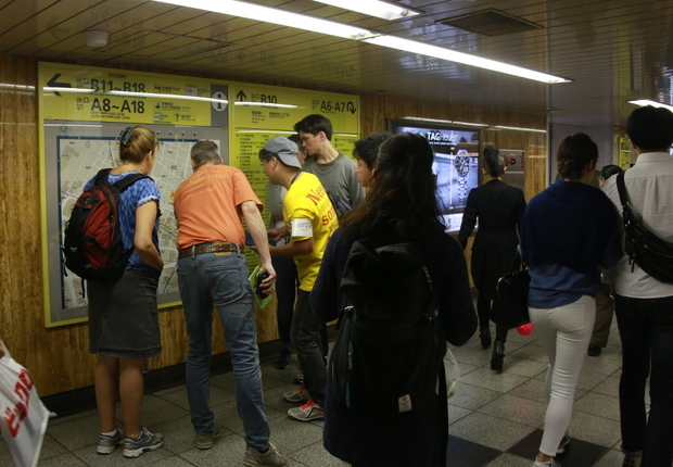 また、おせっかいは地上だけでは無く、地下道でも。構内の案内を前に、あちらでも無い、こちらでも無いと迷っているご家族。確かに新宿駅は都内の中でも屈指の迷いスポット。日本人で、上京して10年以上経つ筆者だってたまに迷いますからね。