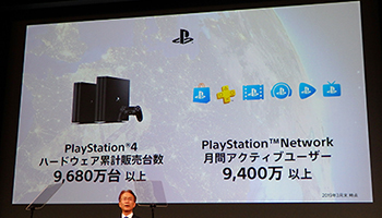 ソニーが5月21日に開催した経営方針説明会の中で、吉田憲一郎社長兼CEOは「PS4(PlayStation4)の累計販売台数が年内に1億台に到達する見込み」とあらためて語った。PS4の累計販売台数は2019年1月に9000万台を突破し、3月末時点で9680万台以上を達成。ネットワークに接続しているPlayStation Networkの月間アクティブユーザーは9400万以上に達した。
