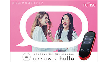 富士通コネクテッドテクノロジーズは、約101gの軽量・コンパクトな初のマルチ通訳機「arrows hello AT01」を5月23日から主要家電量販店で順次発売する。