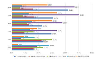 最も多くのスマホユーザーから挙がったのは、「ニュース」(16.4%)。次いで「友人や知人からのメッセージ」(13.9%)、「気温や天気などの情報」(10.8%)などが続いたという。10代に限ってみると、「ゲーム」(14.0%)が最も多く、次いで「動画」(11.6%)。20代は、「動画」(15.0%)が最も多く、次いで「友人や知人からのメッセージ」「友人や知人のSNSのタイムライン」がともに11.1%とのことだ。