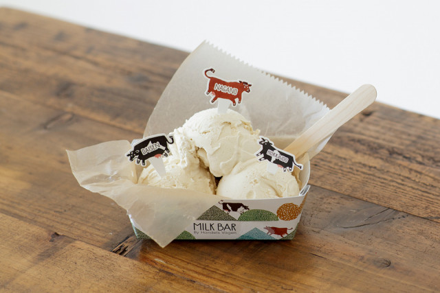 ハンデルスカフェのミルクアイスクリームは、同じミルクアイスでも、使う牛乳によって味の違いを楽しむことができるという一品。