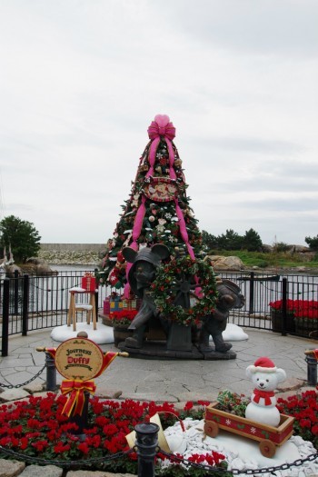 大きなクリスマスツリーにはダッフィーたちが飾られているよ!