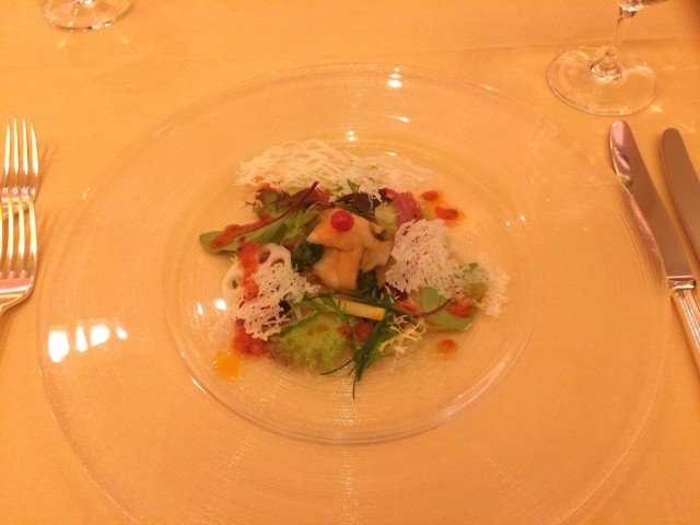 中央には天使の海老をコンソメのジュレで固めたもの。