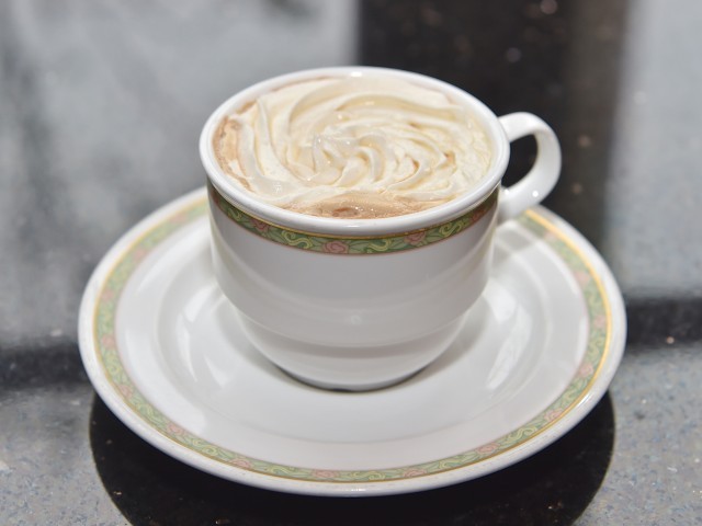 コーヒー、または紅茶に加え、デザートセットではソルテッドキャラメルラテも選択できます。