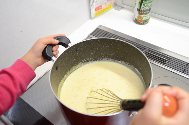 基本は材料を入れて混ぜるだけなので、ちびっこたちも楽しみながら作れますよ。ただし火を使うので、やけどには気をつけてください。