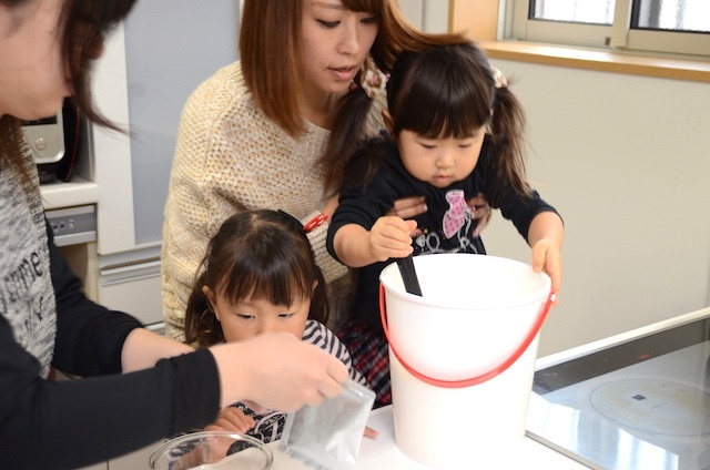 ある程度粗熱が取れたら、フタをして冷蔵庫へIN。バケツがひとつ入ることになるので、かなり空けておく必要があります。さて、製造工程はここまで。子どもたちは「ねえねえ、おやつの時間には食べられる?」なんて聞いていますが……。