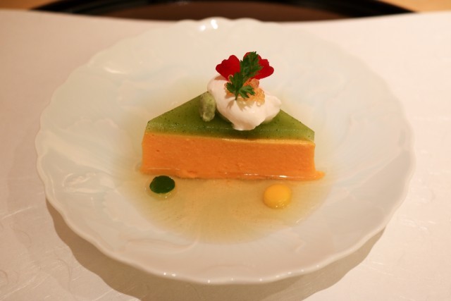 一番最初に口にする「先付」は「人参のムース」です。