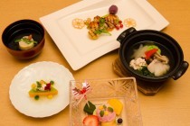 ちょうど蛍が飛び交う、夕暮れの雰囲気の中で食事を楽しむことができます。