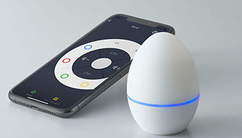 キングジムは5月31日、家電の赤外線リモコン情報を学習し、Bluetoothで接続したスマートフォンのアプリからまとめて操作できるスマートリモコン「エッグ」を発売した。税別価格は9800円。