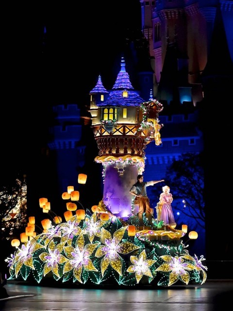 フロートにはラプンツェルが過ごしていた塔をはじめ、映画でも印象的なランタンや魔法の金色の花のデザインが施されています。