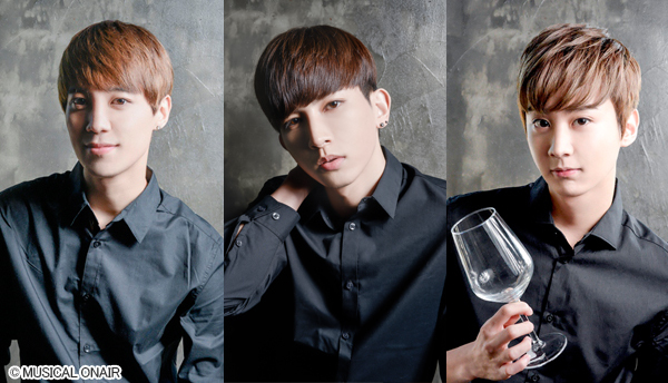 3人は、トリプルキャストで男性主人公のソムリエ、ジミンと、ジミンがなりすますカフェの客、ジョンミンの一人二役。スタイリッシュな衣装に身を包んだ3人のスタイルはもちろん、ポップス、ボサノバ、ラテン、ジャズなど様々なジャンルのナンバーが楽しめるのもポイントだ。